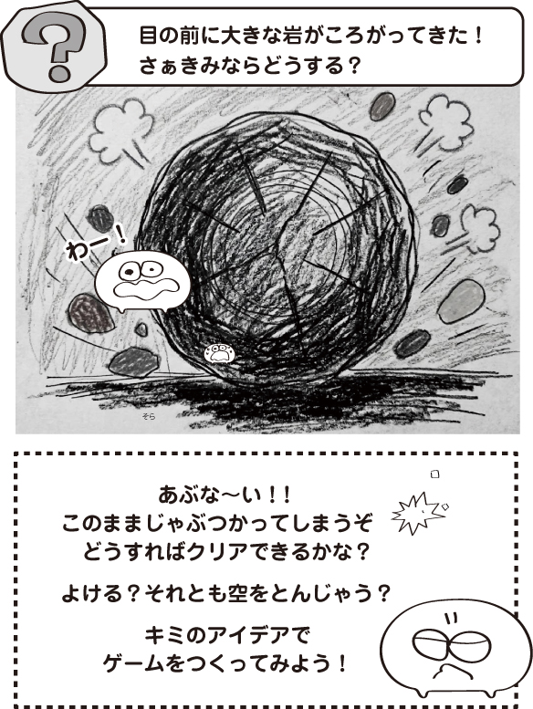 1. ゲームのテーマ「迫り来る岩を超えろ!」